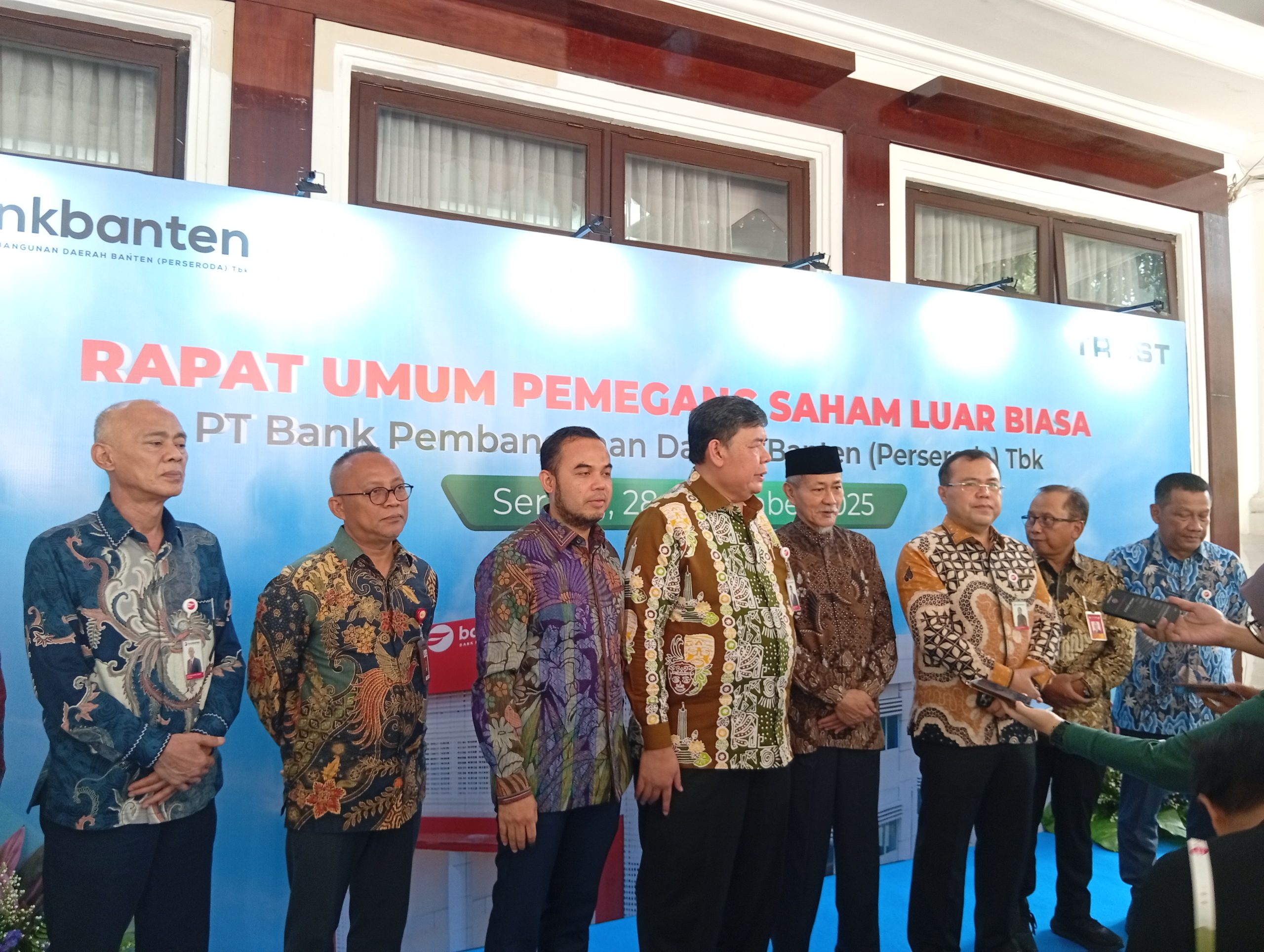 RUPSLB dipimpin oleh manajemen Bank Banten dan dihadiri unsur Pemerintah Provinsi Banten, DPRD, regulator, tokoh masyarakat, serta jajaran Bank Jatim. Turut hadir Gubernur Banten Andra Soni, Sekda Banten Deden Apriandhi, Kepala OJK Provinsi Banten Adi Dharma, tokoh masyarakat KH. Embay Mulya Syarief, jajaran Komisaris Bank Banten, Direksi Bank Banten, serta perwakilan Bank Jatim yang dipimpin Direktur Bisnis Menengah, Korporasi dan Jaringan, Arif Suhirman